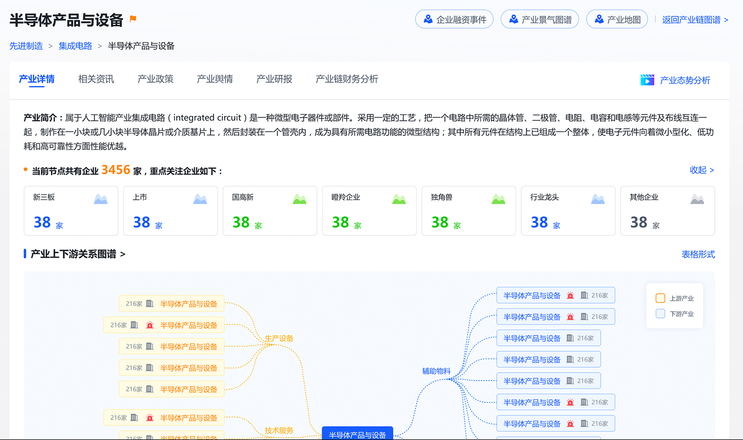 產(chǎn)業(yè)鏈地圖:政府/園區(qū)可利用產(chǎn)業(yè)鏈地圖篩選出全國(guó)范圍內(nèi)產(chǎn)業(yè)集聚度較高、鏈條完整、高資質(zhì)企業(yè)多的地區(qū),洞察產(chǎn)業(yè)發(fā)展格局、地理分布等,為區(qū)域產(chǎn)業(yè)經(jīng)濟(jì)發(fā)展決策提供支撐參考。