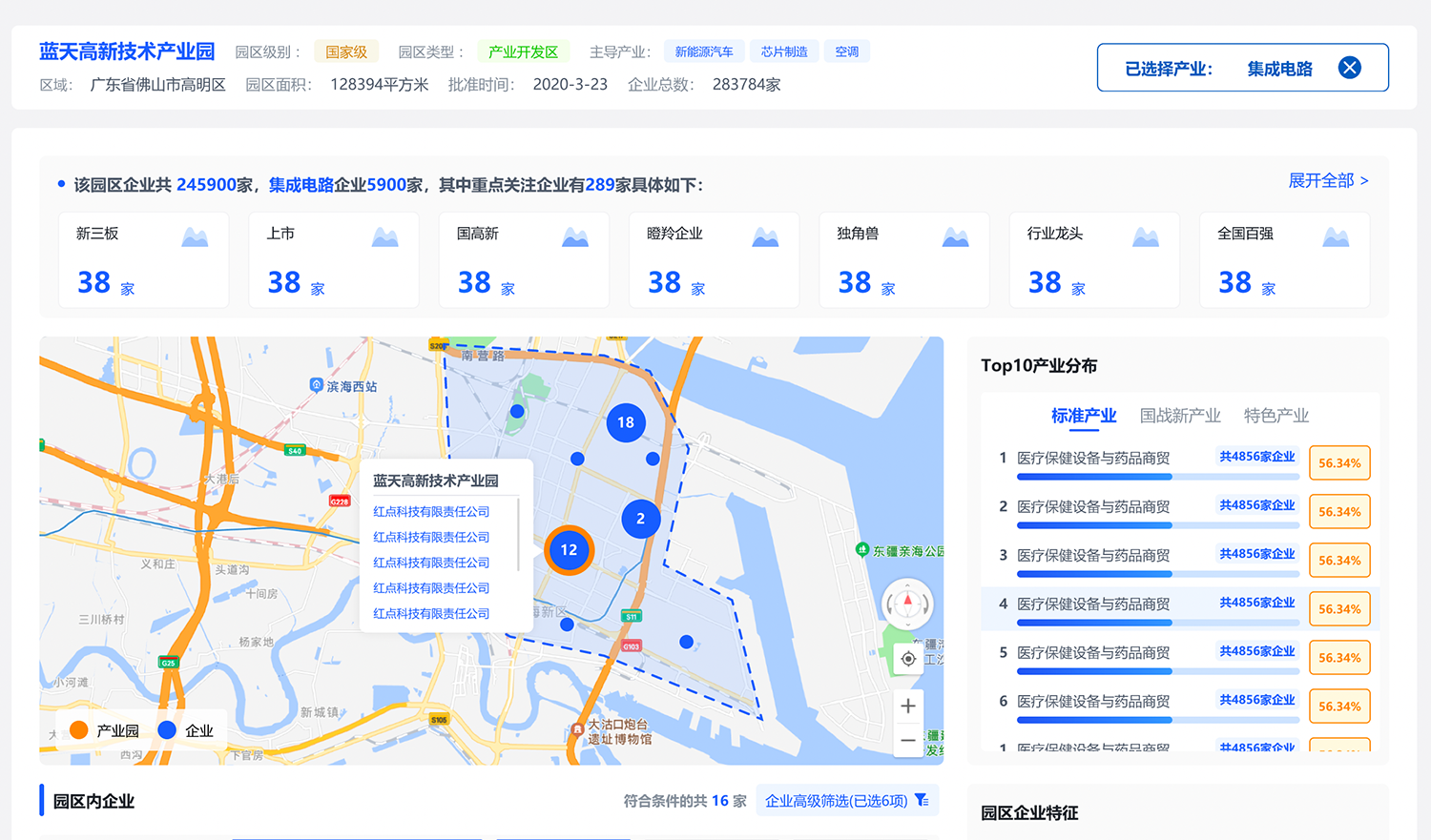 產(chǎn)業(yè)園地圖:了解區(qū)域產(chǎn)業(yè)布局,輔助政府規(guī)劃園區(qū)和制定優(yōu)惠政策;從產(chǎn)業(yè)園中挖掘集中市場(chǎng)機(jī)會(huì),從同類(lèi)企業(yè)、上下游企業(yè)、遷入遷出企業(yè)中挖掘潛在客戶(hù)。